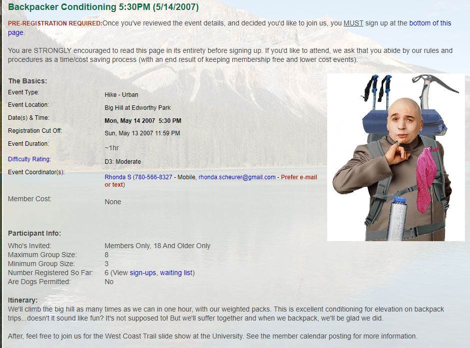 Club Events 2007 : 2007-05-14 : COC - Backpacker Conditioning