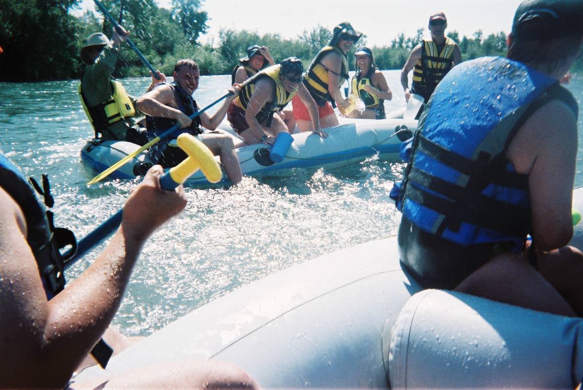 As it turned out, Lutz was our only visitor who made it on this float, but we all made up for the lack of more visitors by having lots and lots of warfare. Except for the Switzerland boat, of course. Once they did get a bit too close to a trigger-happy rafter who dumped a jug full of water into a Switzerland lap but for the most part I think we did a fine job of honoring their request to NOT be splashed. This trip was SO MUCH FUN... perhaps the best ever! Thanks to all of you who came out for a very very fun day, and thanks to all the photographers who helped capture the moments. -- Rhonda |