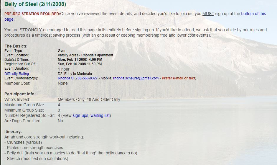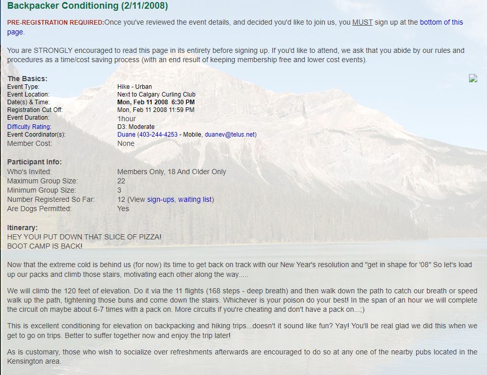 Club Events 2008 : 2008-02-11 : COC - Belly of Steel, and Backpacker Conditioning