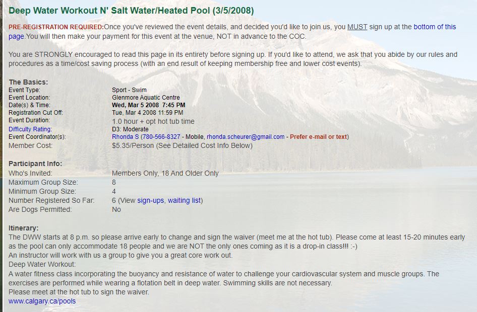 Club Events 2008 : 2008-03-05 : COC - Deep Water Workout N' Salt Water/Heated Pool