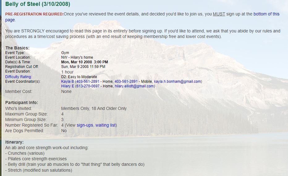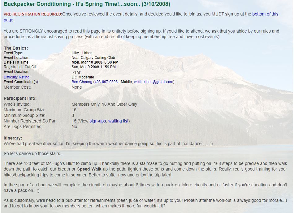 Club Events 2008 : 2008-03-10 : COC - Belly of Steel, and Backpacker Conditioning