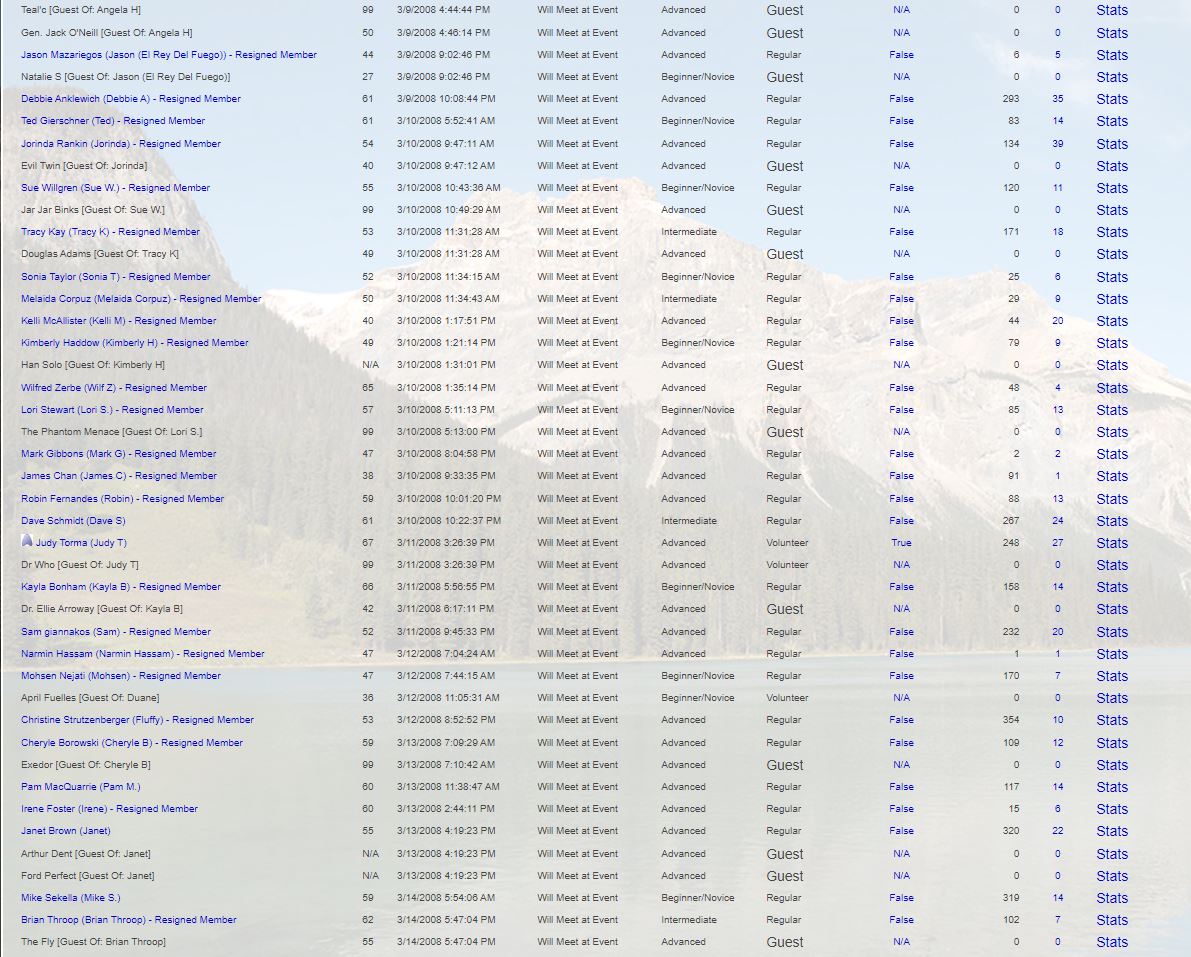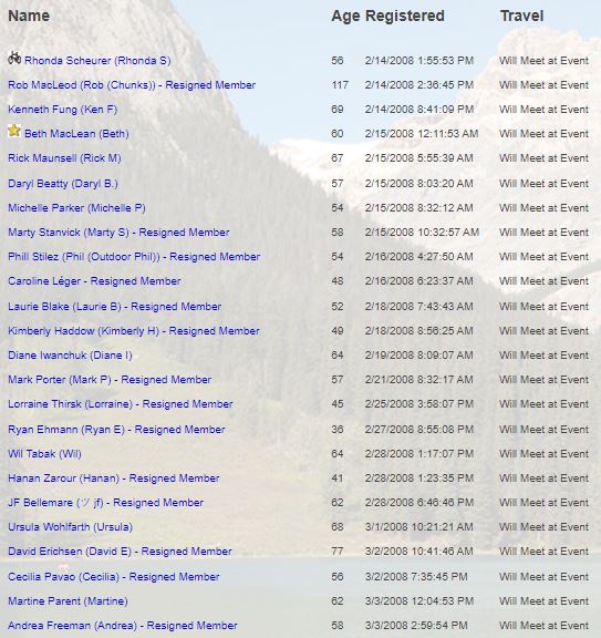 I trust you'll find it rather conveinient that 'My Imaginary Friend' has a portable teleportation device, and that we'll be able to manage our possible double bookings, by using the time feature as well. I was amazed by the spring in my steps on this hike. It felt like I was a kid again, bouncing around with ample power. - Cynthia Wow, an event without a Mitko and his Bulgarian flag! I heard their bears were also out early. Fortunately, some of us packed our stun guns. Unfortunately, some of us forgot to register them & they were confiscated by Teleport Security :( So stay in tight groups of 50! Are there outhouses here? And are they the old-styled suction or new gravity-controlled? So this is what I mortgaged my house to see/hike?! I could have gone to see Boy George for a lot less! - Wendy |