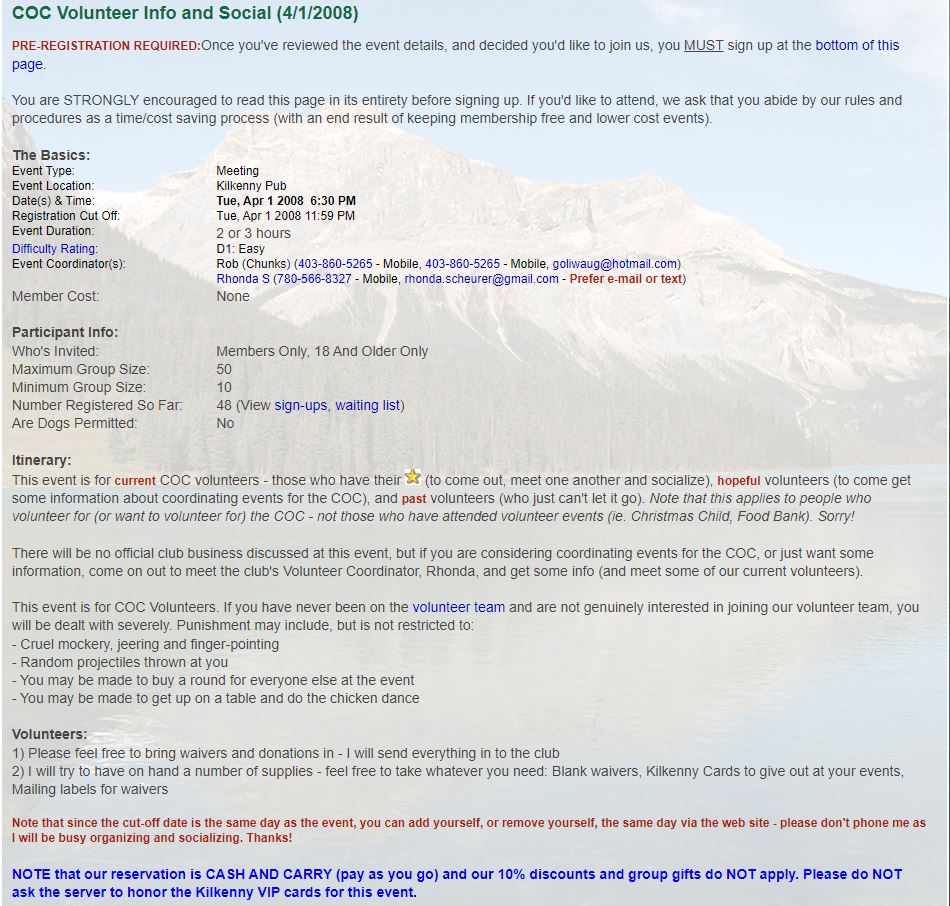 Club Events 2008 : 2008-04-01 : COC - Teleport to Wolf 562 c for sight-seeing and light hiking, COC Volunteer Info and Social, and CCC - Meet Boy George!