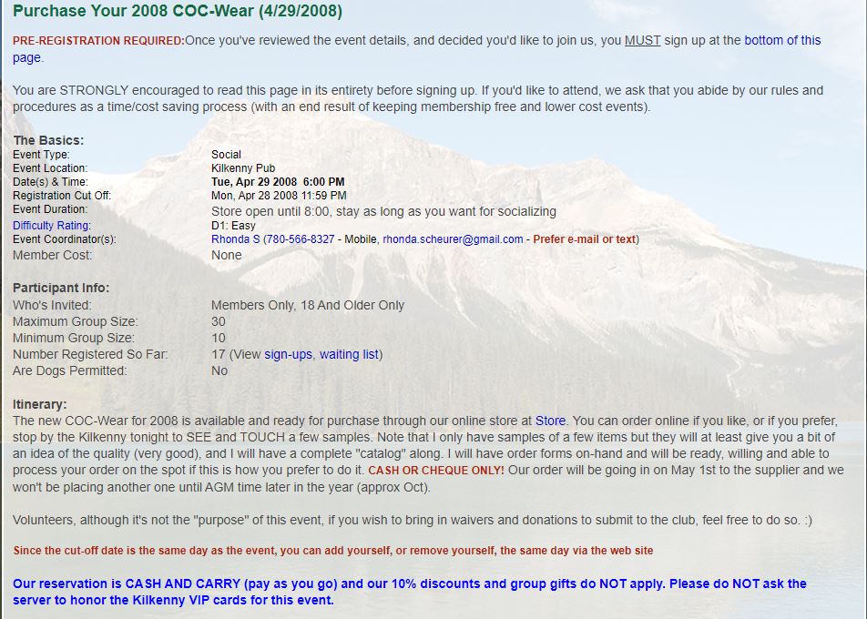 Club Events 2008 : 2008-04-29 : COC - Purchase Your 2008 COC-Wear