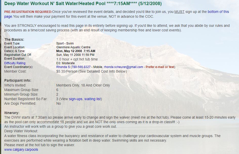 Club Events 2008 : 2008-05-12 : COC - Deep Water Workout N' Salt Water/Heated Pool