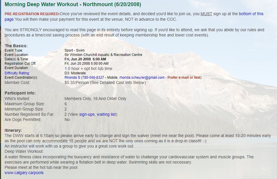 Club Events 2008 : 2008-06-20 : COC - Morning Deep Water Workout - Northmount