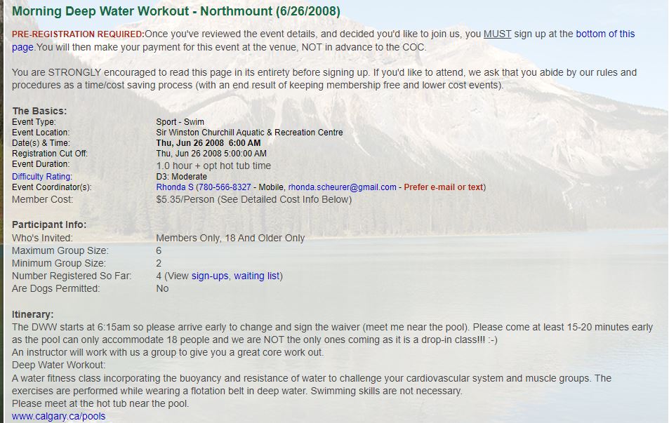 Club Events 2008 : 2008-06-26 : COC - Morning Deep Water Workout - Northmount