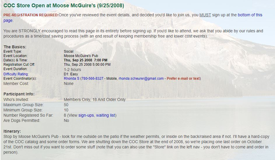 Club Events 2008 : 2008-09-25 : COC - Barrier Fire Lookout, and Store Open at Moose McGuire's