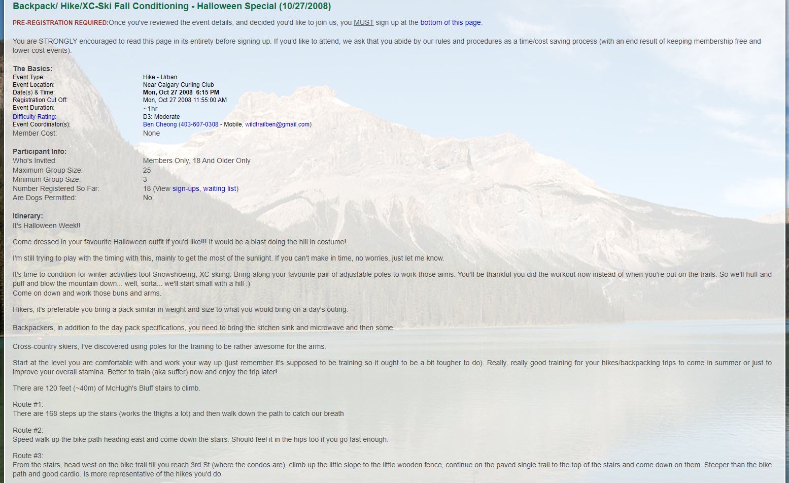 Club Events 2008 : 2008-10-27 : COC - Backpack/ Hike/XC-Ski Fall Conditioning - Halloween Special