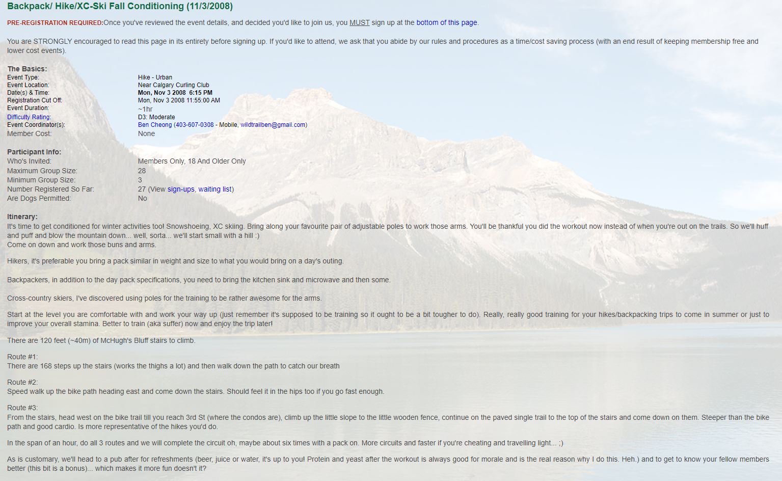 Club Events 2008 : 2008-11-03 : COC - Backpack/ Hike/XC-Ski Fall Conditioning