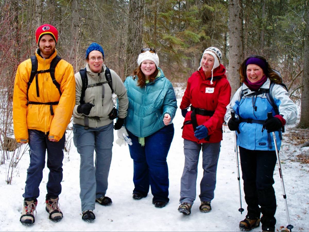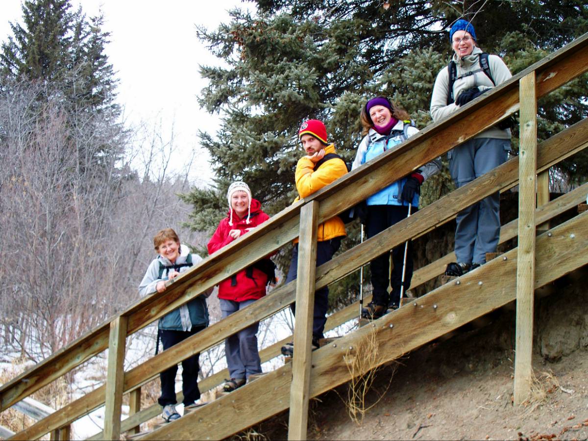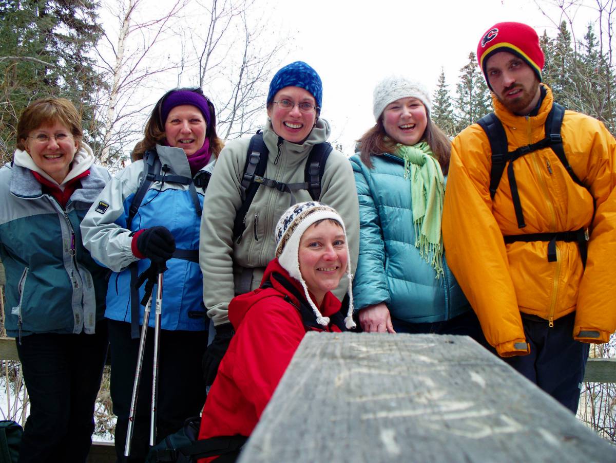 This Friday afternoon hike is one that can only be described as a great time. Matching outfits, Boinking, and surprise guests. Whitemud Park is a nice escape from the city. There are plenty of trees and a creek. According to the Calgary folks they thought the trees would never stop and after a while claustrophobia set in and they could not wait to retreat the wide open spaces of the parking lot. Although it is winter every time I think of this event I hear “Boink”, “Boink”, “Boink” in my mind. Is that even how you spell boink??? According to spell checker no! We met Shelton on the way out and although against club policy to let a non-registered person on to an event we let him join anyway since he was good friends with Rhonda. On the last section of the return hike we had another friend of Rhonda visit us. Her name was Little Bridgette. All I know is Rhonda has many many friends. If you were not on this hike you can only imagine how interesting these people we met were. Thank you for coming out Calgary you are great fun. Mint Julip