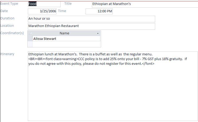 | Noon on Saturday did not work at Marathon's. The restaurant has been known for not opening on time so I made the reservation for a half hour after they were to open. We waited for a half hour but, alas, they still did not open. Again, it was little field trip to the Blue Nile. We learned that Ethiopian coffee is very different than Tim Horton's! |