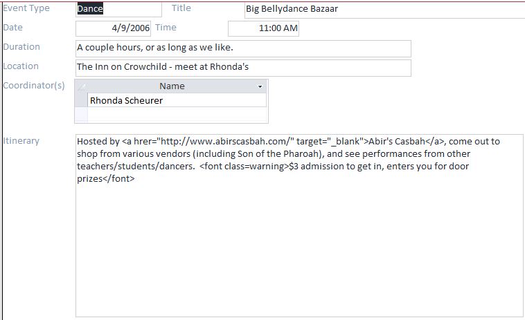 Club Events 2006 : 2006-04-09 : CCC - Big Bellydance Bazaar, and Vicky Moves to Qatar