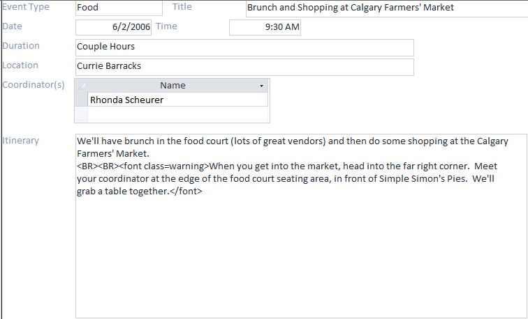 We'll have brunch in the food court (lots of great vendors) and then do some shopping at the Calgary Farmers' Market. When you get into the market, head into the far right corner. Meet your coordinator at the edge of the food court seating area, in front of Simple Simon's Pies. We'll grab a table together. |