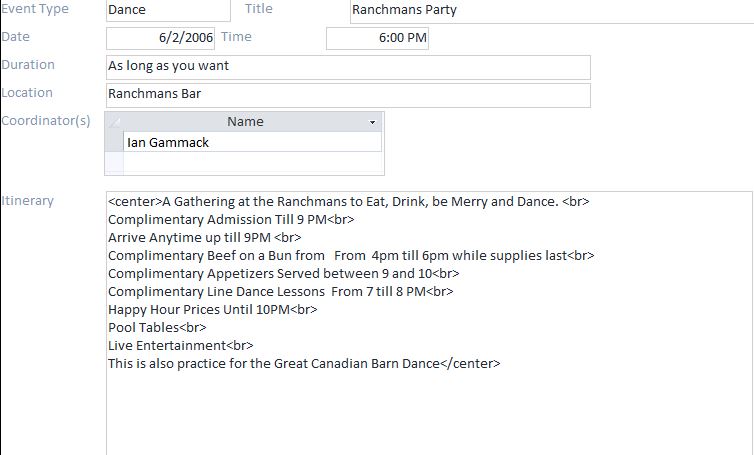 Complimentary Admission Till 9 PM Arrive Anytime up till 9PM Complimentary Beef on a Bun from From 4pm till 6pm while supplies last Complimentary Appetizers Served between 9 and 10 Complimentary Line Dance Lessons From 7 till 8 PM Happy Hour Prices Until 10PM Pool Tables Live Entertainment This is also practice for the Great Canadian Barn Dance A great party. Thanks to all who came out to have some fun. We had to share the place with an internet dating group. I think we managed to get along. Some of us showed up early and had the beef on a bun. Some of us came later and had a line dance lesson and some of us just showed up to socialize |