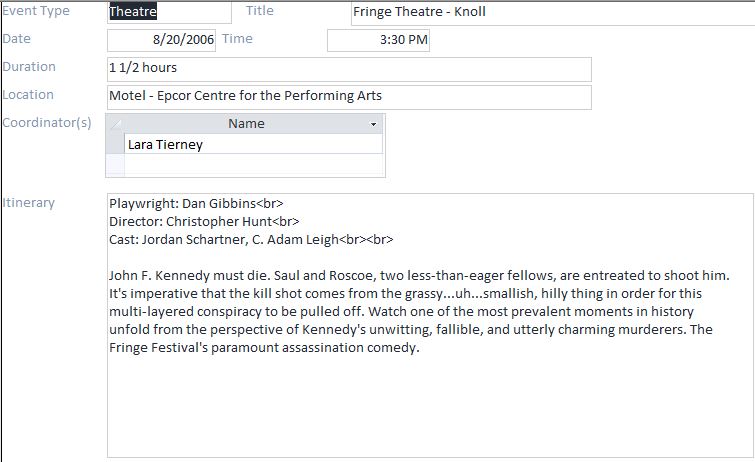 Everyone on the list showed up - a great start to an event! Waiting in line for the doors to open was no problem as there were lots of people to have conversations with. When the doors did open, there was lots of room to get seats. It was great to be able to see a show from the Fringe and support this festival. All in all, a good way to spend some time on a Sunday afternoon. |