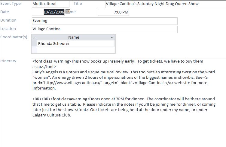 Doors open at 7PM for dinner. The coordinator will be there around that time to get us a table. Please indicate in the notes if you'll be joining me for dinner, or coming later just for the show. Our tickets are being held at the door under my name, or under Calgary Culture Club. |