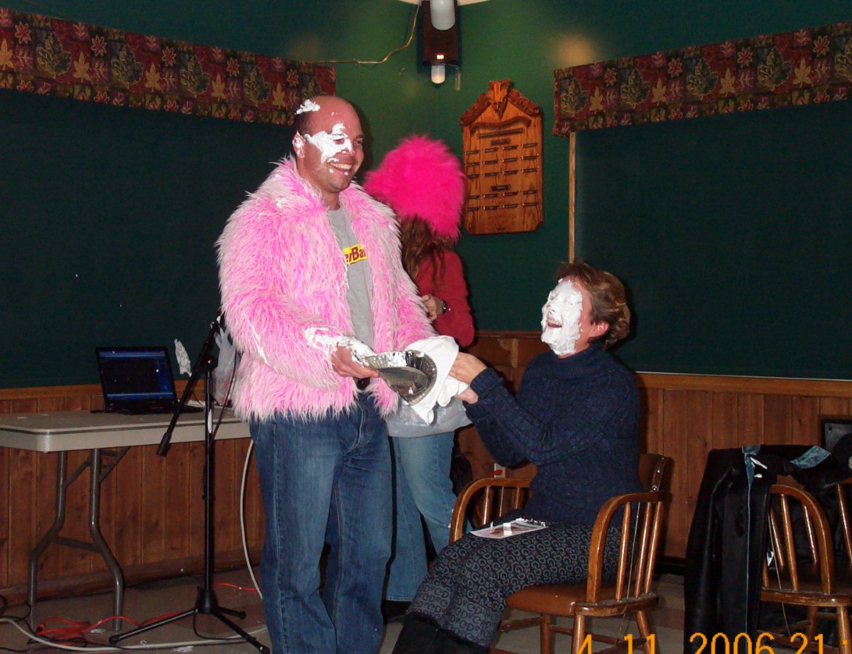 I think we would all agree that the highlight of the evening was the slide movie created by my mom. If you would like to hire her to do one for you (yes, she does this professionally), you can get more information at www.gal-friday.com. Other highlights included the ol' pie-in-the-face trick, Kevin's antics (Kev, check your COC member number), and Greg's dancing. Who's turn is it next???? HMMMMMMM???? -- Rhonda |