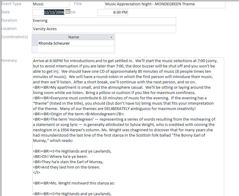Club Events 2006 : 2006-12-13 : CCC - Music Appreciation Night - MONDEGREEN Theme
