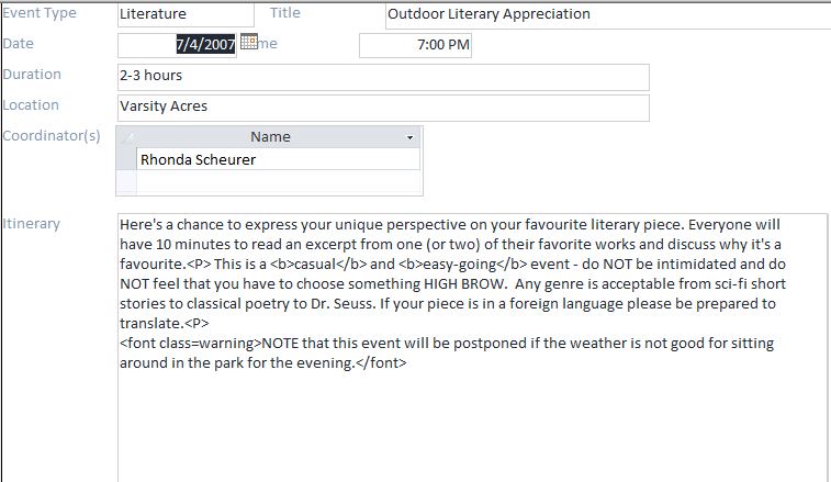 Here's a chance to express your unique perspective on your favourite literary piece. Everyone will have 10 minutes to read an excerpt from one (or two) of their favorite works and discuss why it's a favourite. This is a casual and easy-going event - do NOT be intimidated and do NOT feel that you have to choose something HIGH BROW. Any genre is acceptable from sci-fi short stories to classical poetry to Dr. Seuss. If your piece is in a foreign language please be prepared to translate. NOTE that this event will be postponed if the weather is not good for sitting around in the park for the evening. |