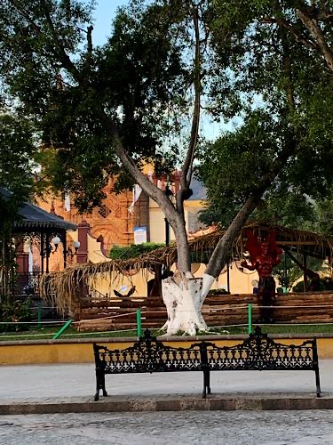 We also did some exploring of the town but we didn’t do our main errand of grocery shopping. The kitchen and rooftop here are undergoing renovations which we’re supposed to be finished by this morning, but… aren’t. Those are two of the criteria for me booking this place so it’s a little distressing that they’re not available. Our room is small and spartan, which is fine, if we can enjoy the kitchen and rooftop, which, so far we can’t. One of the highlights of visiting Jalpan is to see the two Franciscan missions in the area. There is one right in Jalpan, Mision Santiago Apostol. Sadly, it is under construction and we can only see the outside (through scaffolding) and not the interior (except for the side courtyard). In other towns that we’ve visited we’ve found lots of interesting and vibrant street art. So far what we’ve found here is focused on very sad and tragic topics. Maybe we’ll find happier art while we’re here? Or maybe we won’t. Time, and further exploration will tell. |