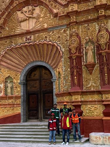 We noticed this morning that the scaffolding was off of the front of the Misión Santiago Apóstol de Jalpan. I got my hopes up that maybe we’d be able to go in and have a look but we went past this evening and it looks like we’re out of luck. The construction crew says it’ll be at least a week before folks can go back in. At least we got to see the facade without the scaffolding, and we got a pic of the crew. They seemed disproportionately pleased to pose for us. | |
