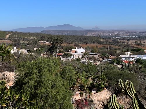On thé horizon, just right of center, you can see the monolith at Bernal poking up -