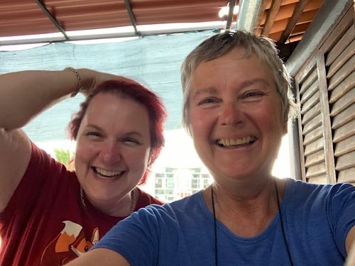 | This morning we went for breakfast and some last minute souvenir shopping with Dawn. She shared her Uber with us - stopping along the way to the airport to get us super close to our Plan B AirBnB. The new AirBnB has a lot of character, including an odd bathroom with a very low ceiling. |