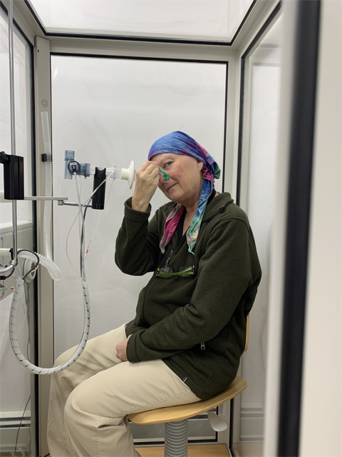 After I got outfitted with all the gear, I couldn't get my own t-shirt back on over it all. Thankfully Brent had a jacket along that he didn't need, so I put that on over top of all the gear. Then, I went across the hall to get a bunch of breath tests done - completely unexpected, but I'm looking forward to seeing the results.