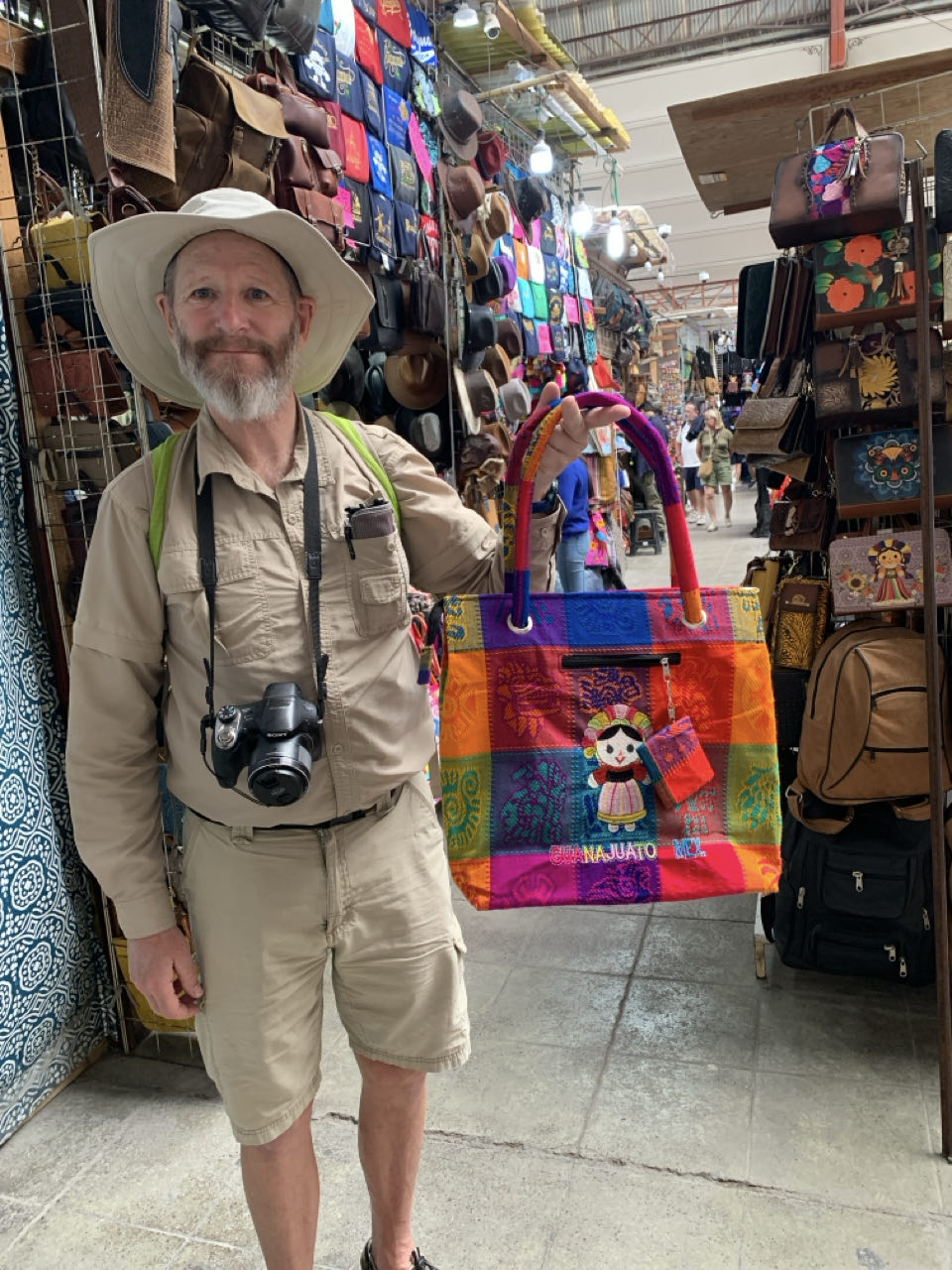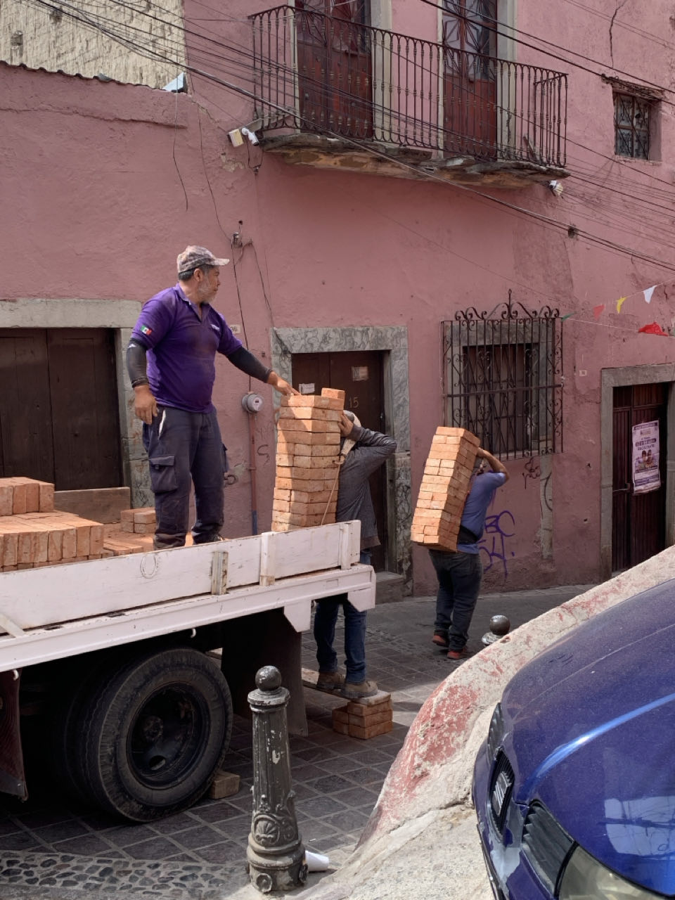 But now we have to take our own photos of ourselves, so it sucks to be us, too. We had so much fun having her along on the trip. Anyway, we walked up to Mina de San Juan de Rayas this morning, which was quite a good hike. It was a very interesting site, and it looks to still be operating. On the way down we saw some young men carrying bricks. Anyone who thinks Mexicans are lazy needs to visit Mexico and see how hard these people work. We also took another spin through the Mercado and bought a nice bag for our lovely pharmacist back home who helped in the process of getting me my heart meds. Then we bought some not-quite street tacos and ate them on our terrace. It was a very nice last day here. Tomorrow we move on to Queretaro. |