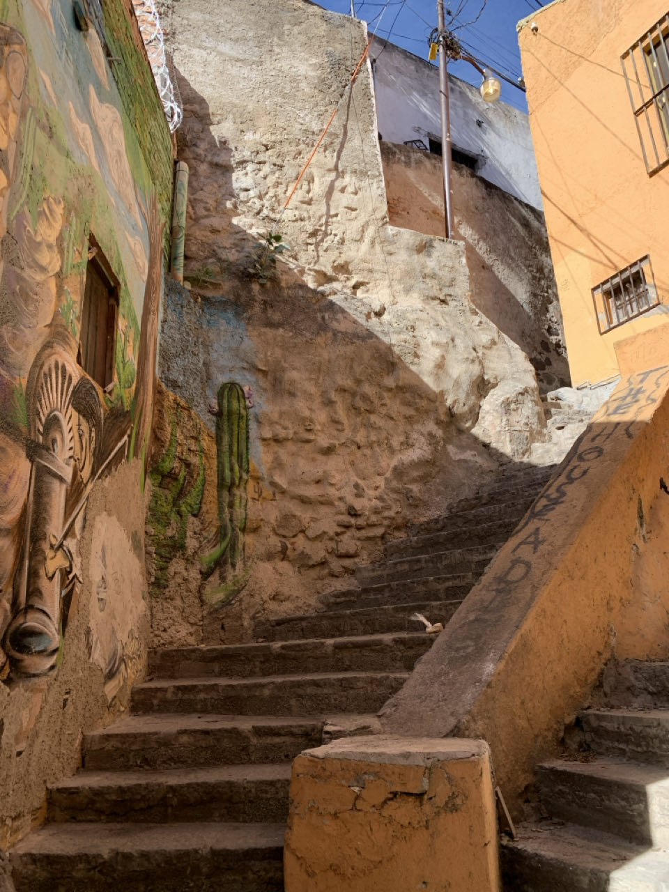 We left our Airbnb at 7:30 this morning and took the metro to Central del Norte and left Mexico City on a Primera Plus bus, which was crazy clean and comfortable. We had a six hour ride to get to Guanajuato to meet up with Elissa. Our airbnbs are on the same tiny steep alley, and amazingly, our patios face each other! Crazy. |