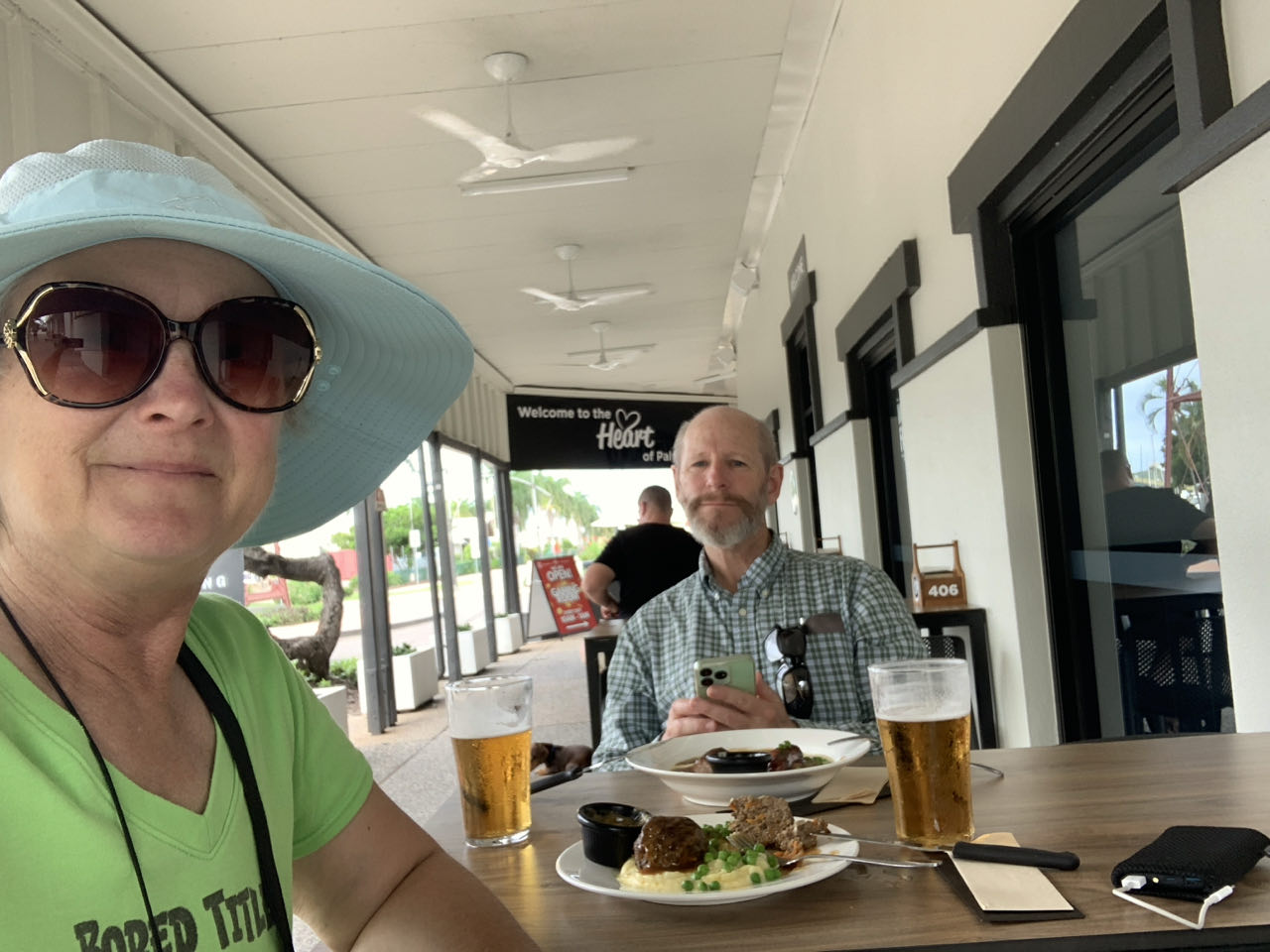 Our train departed Cairns for Townsville at 7:40 today. Someone was smart enough to suggest we make and take coffees along with us. Yay! The scenery along the way was pleasant but unremarkable, unlike our pub food dinner which was some of the best pub food we’ve ever had. Yum! |
