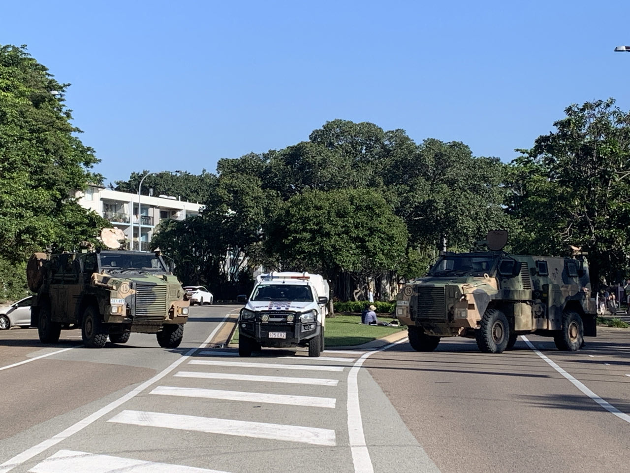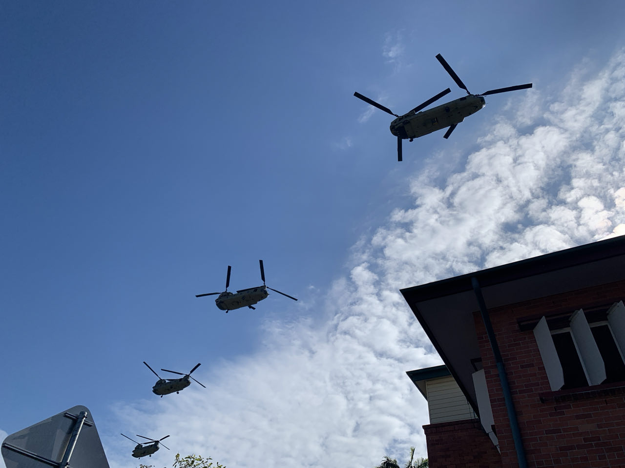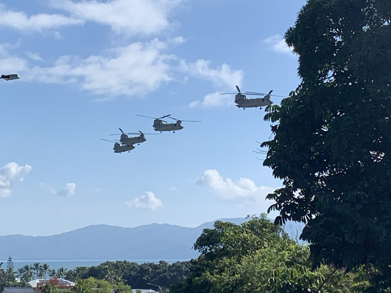 We leave for Bowen this afternoon but we had time to go off to see the Anzac Day parade this morning. We enjoyed the procession of the various branches of the military, and the mini air show with the four military helicopters was a pleasant surprise. We’re now having lunch while we wait to catch the train to Bowen. |