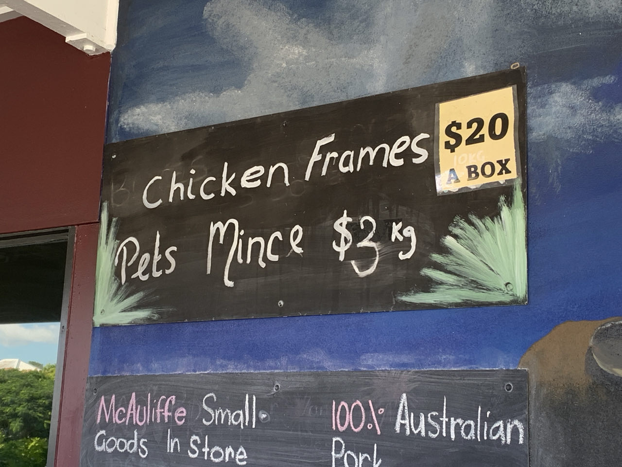 A little ways north of our hotel there’s a place called Mullers Lagoon. We took a walk up there after breakfast. We saw sooo many birds, including three parrots. We also saw a lot of friendly turtles in the creek - we figure they’re used to being fed because they all scrambled over to us when we showed up. There’s a butcher shop in town that advertises ‘chicken frames’. We think they mean carcasses for making soup, but I just liked the ‘frames’. Aussies are weird. I like it. |