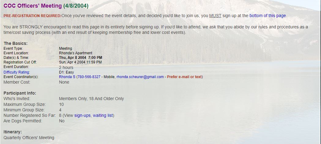 - The group requested enhanced "waiting list" functionality to be added to the web site which Rhonda will be working on asap.