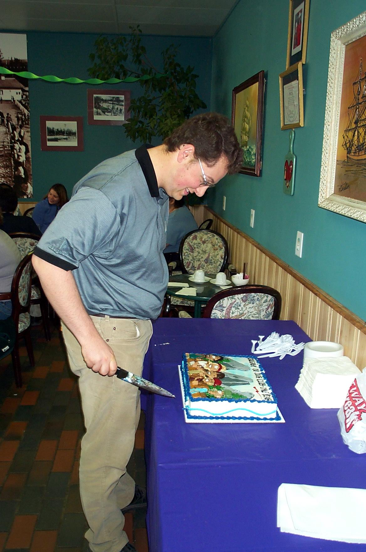 Steve cuts the cake