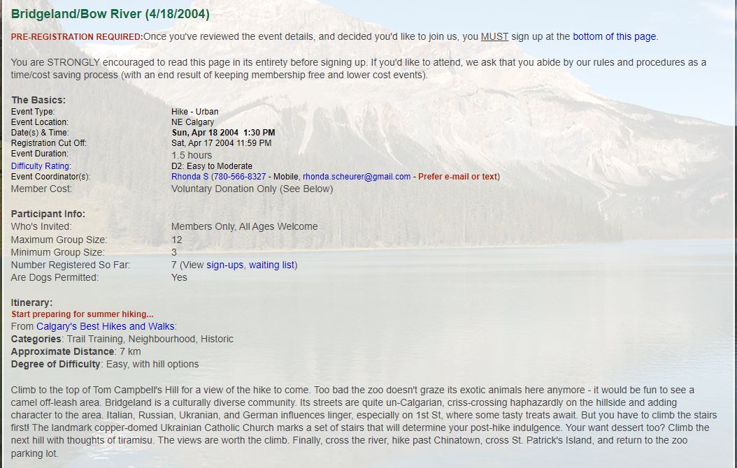 This Urban Hike didn't suck if your name was Doug. That's right... lucky Doug got to spend two hours of his day with SIX women. Life doesn't get any better... right Doug? ;) We actually did take about two hours to do this hike (the book says an hour and a half). It may have had something to do with waiting while Bridget ran up and down the 121-stair staircase near the Ukranian Cultural Center. After her tenth trip, the rest of us had to force her to move on for the rest of the hike. OK, seriously, Bridget's advice to those considering an Urban Hike: try NOT to do one immediately following a trip to the gym involving numerous leg presses, squats, extensions and calf raises. Hmmmmmm.... We had some great views of downtown Calgary, and some of our bridges, as well as a great stroll along part of the Bow River Path, east of city center. It was a pleasant day, 11C with a somewhat cool breeze. For a brief moment during the hike, I went into a trance and channelled my (still living, thank goodness) Mother when I instructed all the hikers to please not accidentally step on the mating bugs that were in our path. Oh boy.... After the hike, I invited the group to join me for the muscle car show at McMahon Stadium, but alas, no one took me up on it. Hmmmmmm... -- Rhonda |