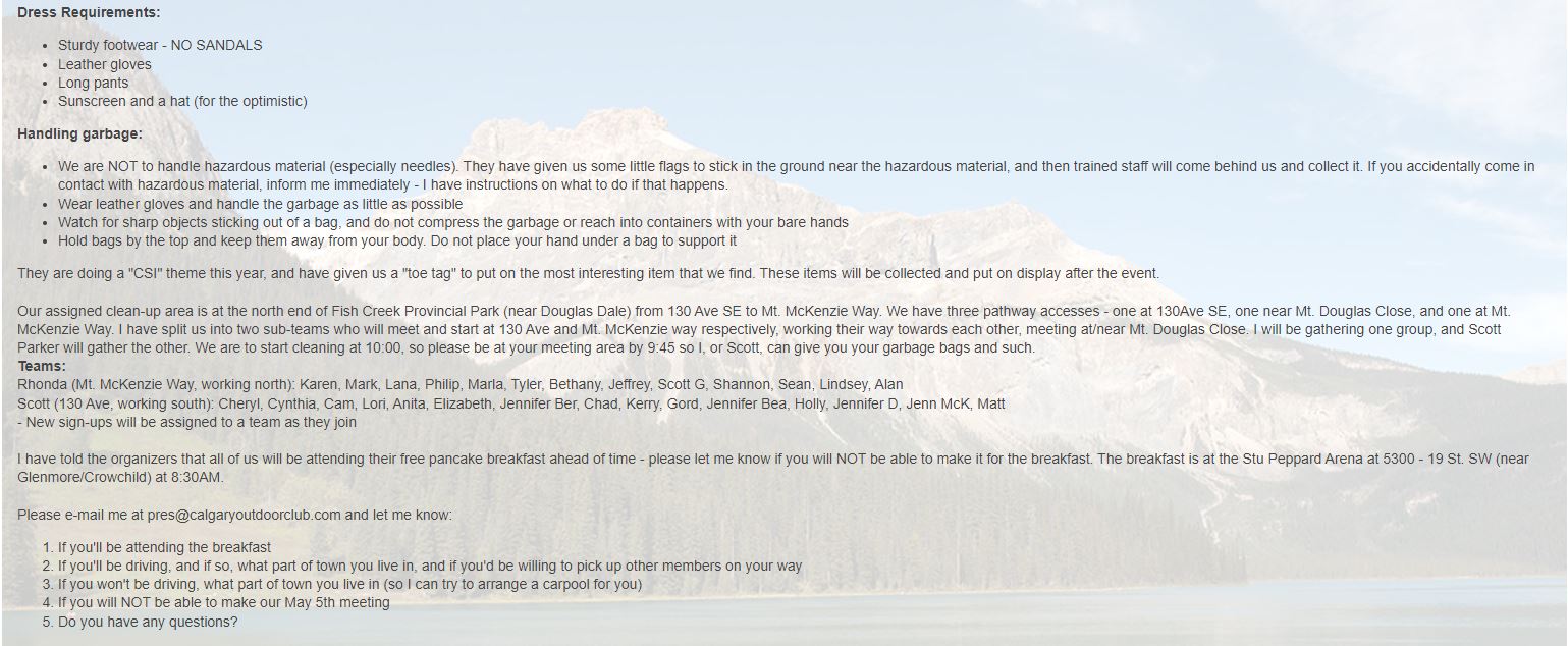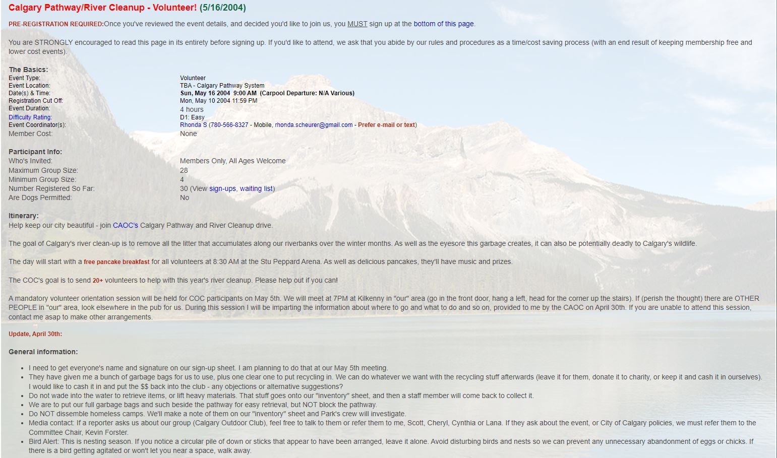 Club Events 2004 : 2004-05-16 : COC - Calgary Pathway/River Cleanup - Volunteer!