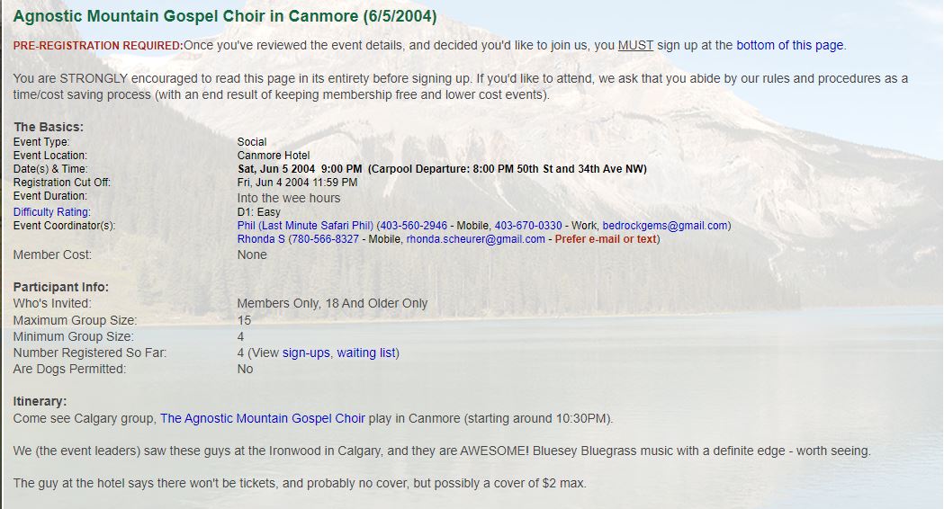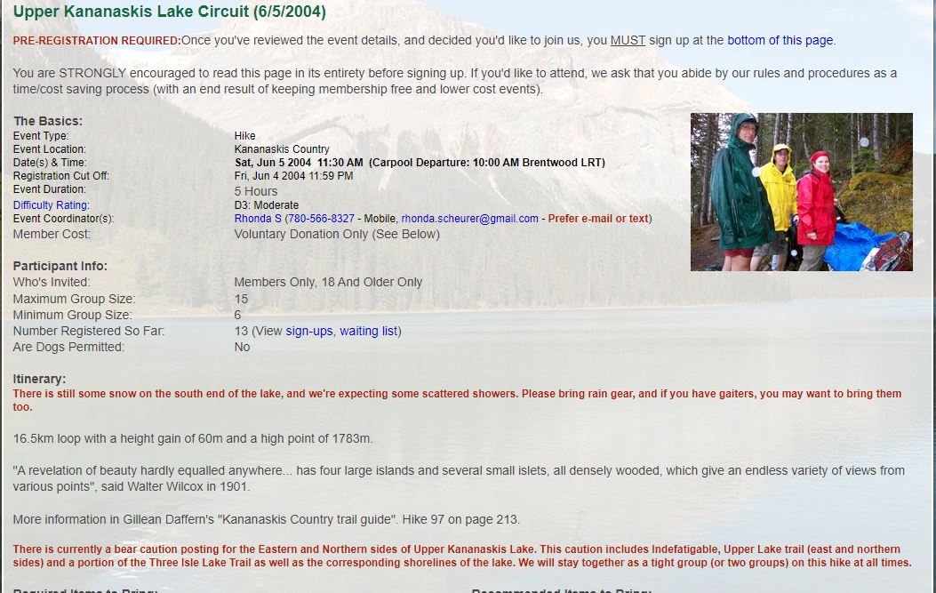 Club Events 2004 : 2004-06-05 : COC - Upper Kananaskis Lake Circuit, and Agnostic Mountain Gospel Choir