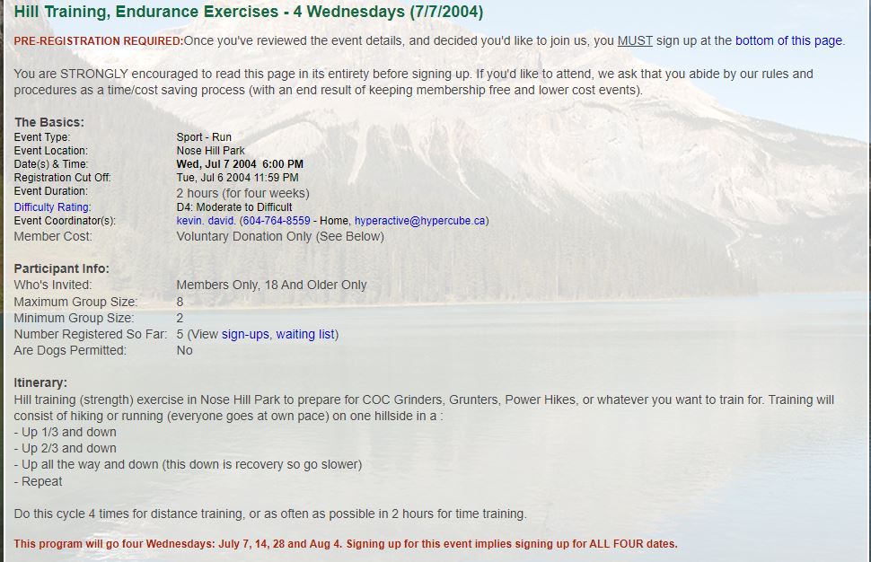 Club Events 2004 : 2004-07-07 : COC - Hill Training, Endurance Exercises - 4 Wednesdays