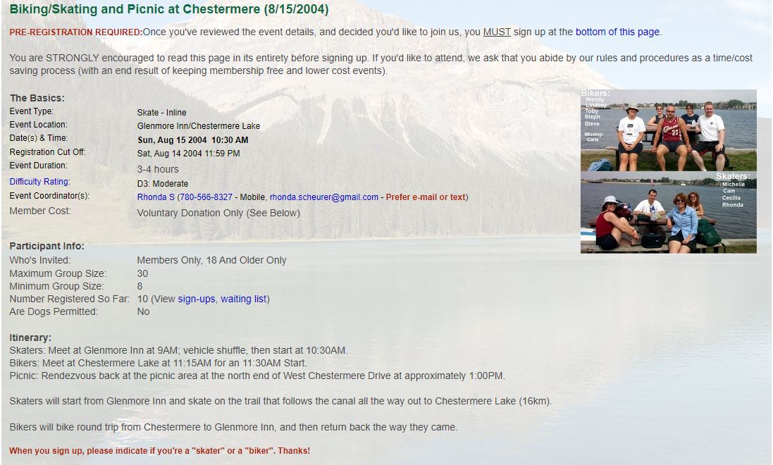 Club Events 2004 : 2004-08-15 : COC - Biking/Skating and Picnic at Chestermere