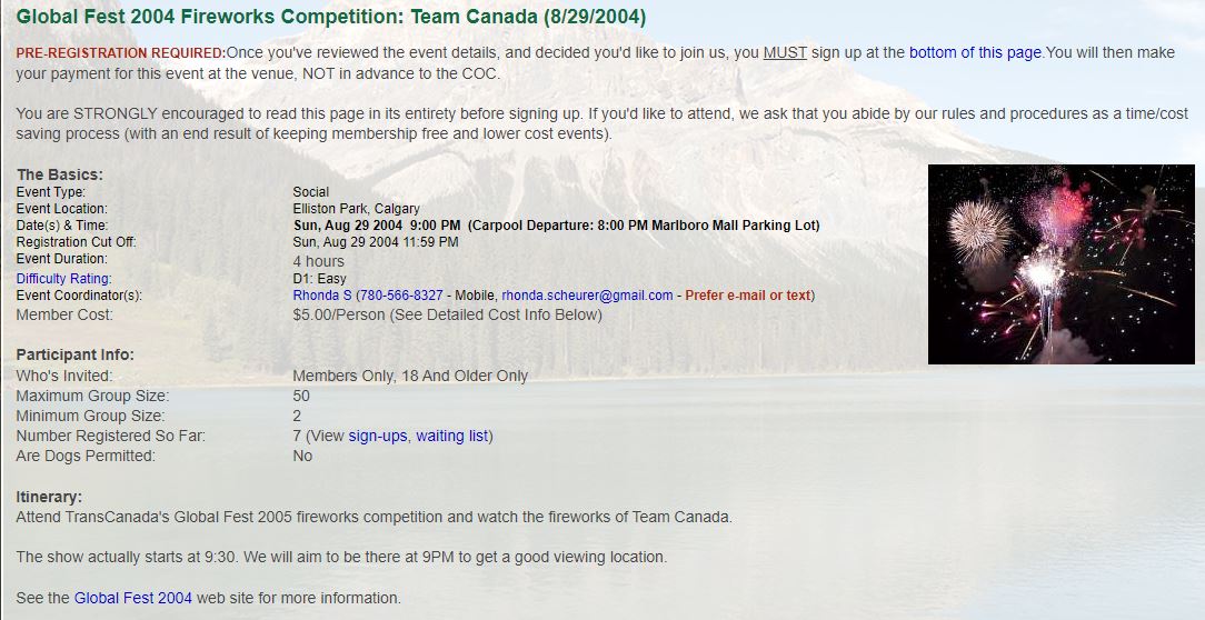 Club Events 2004 : 2004-08-29 : COC - River Float, and Global Fest 2004 Fireworks Competition