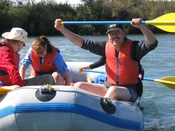 The Chicklet Boat (Pumper, Bumper, Humper and Stroker, aka Cheryl, Cecilia, Rhonda and Jennifer) ruled the river today. The trouble started early with Joel's boat initiating water fights, but anyone who came near us today learned their lesson about picking a water fight with the Chicklets. No one splashed like us. And believe me, the only reason why we were soaked by the end of it (and most everyone else was completely dry) was just because we were sweating so hard from all the paddling and splashing (and the destruction we wreaked on everyone else was contained and hidden using sun and battery-driven hair dryers). And that is the truth (as we see it) about today's river float. The river itself was very nice today, and very different from the first float we did on August 2nd. The Aug 2nd float was an interesting float through the city, where today's was more of a nature float... lots more trees and lots less sky scrapers and neighborhoods. We had a lot more people out today, which was a bit of a logistical... um... 'challenge', but lots of folks stepped up to help out in various ways, and we had a great time. At the end of it all, we met up with the sub-COC group organized by Barbara M and had a barbecue. The tragedy of the day came when I dropped my ostrich burger into the campfire (they don't call me 'Grace' for nothin'), but Philip lept in and saved the day, salvaging the burger and helping me finish cooking it on his much safer camping stove. We finished off the afternoon with some birthday cake for Joel, and then Cheryl, Joel, Cathy and I raced off to go watch the Canadian competitor's display in the International Fireworks Competition. -- Rhonda |