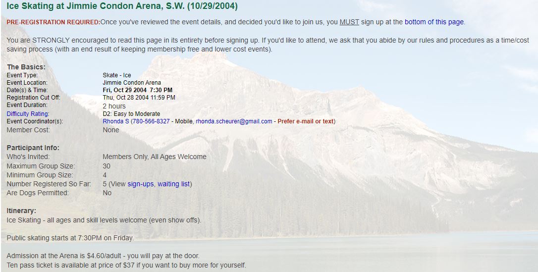 Club Events 2004 : 2004-10-29 : COC - Ice Skating at Jimmie Condon Arena, S.W.
