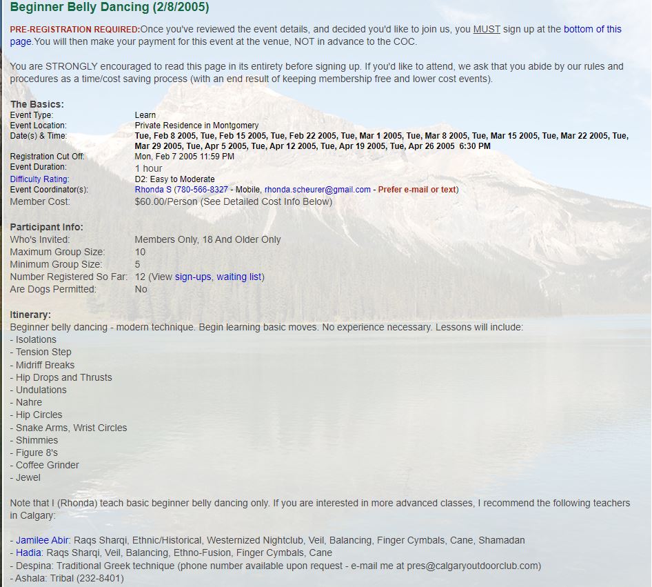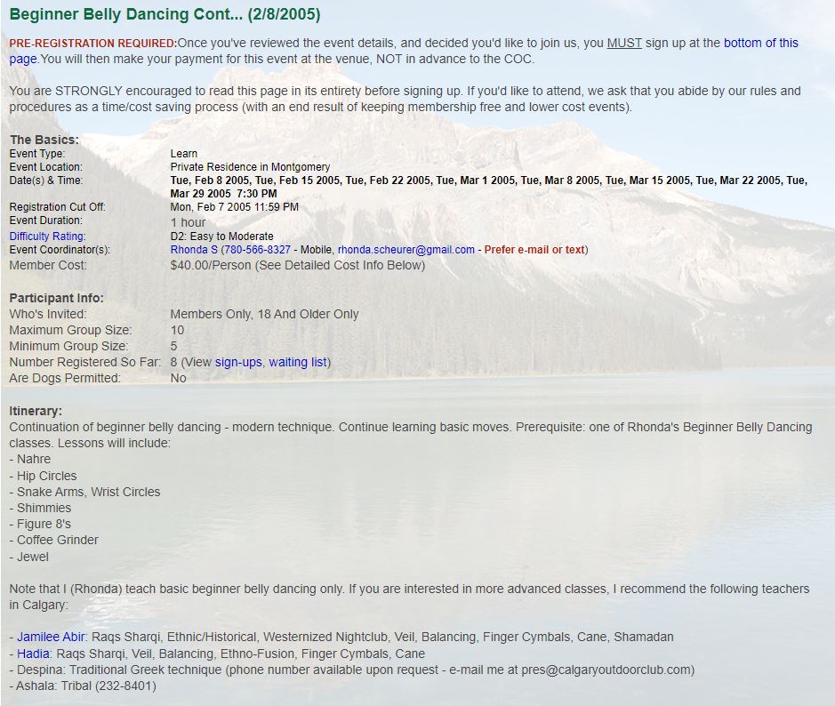 Club Events 2005 : 2005-02-08 : COC - Beginner Belly Dancing