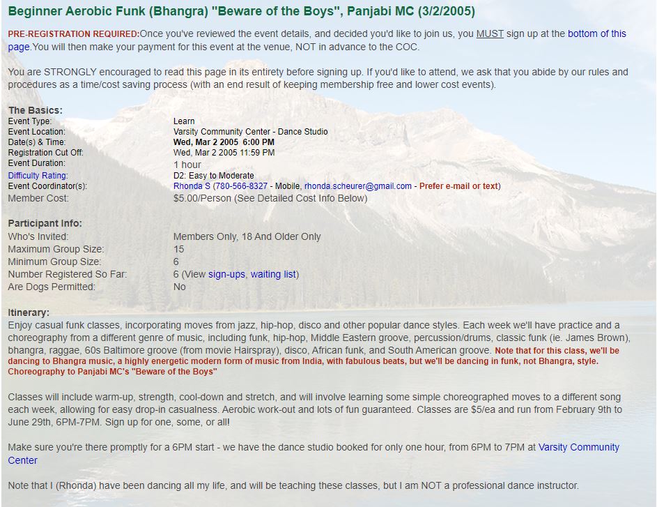 Club Events 2005 : 2005-03-02 : COC - Beginner Aerobic Funk (Bhangra) "Beware of the Boys", Panjabi MC