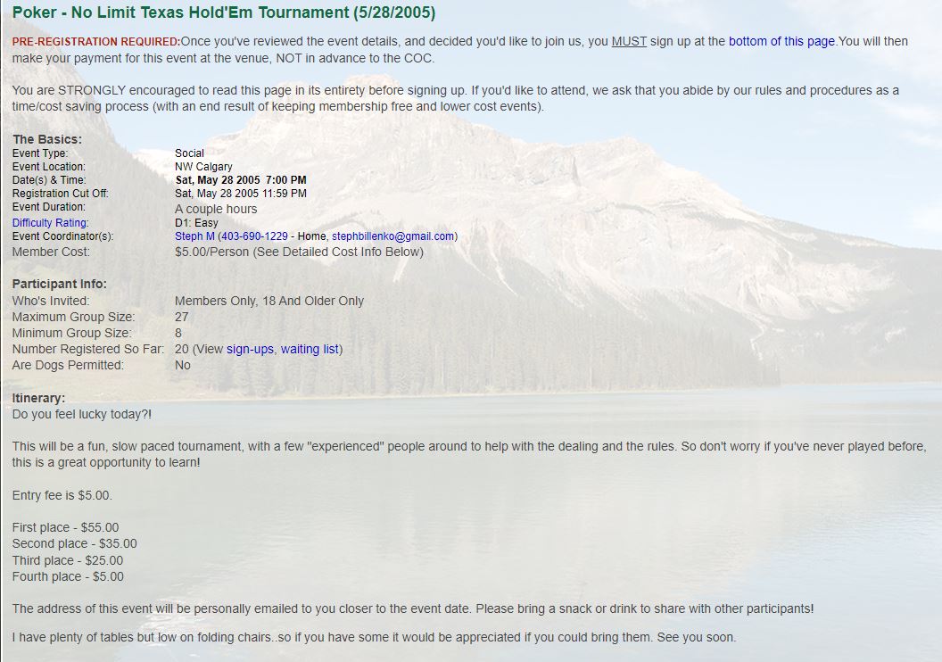 Club Events 2005 : 2005-05-28 : COC - Poker - No Limit Texas Hold'Em Tournament