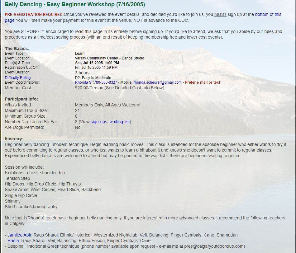 Club Events 2005 : 2005-07-16 : COC - Belly Dancing - Easy Beginner Workshop