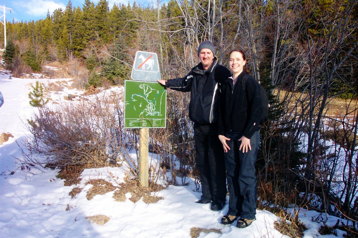 This was an absolutely beautiful day for a winter hike. The temperatures were mild, but the sky was clear and blue - very unusual. We made the trek up the icy trail (boy, were we glad we had our ice cleats) to the lookout station and reveled in the views up there. While we enjoyed our lunch, and the views, absolutely no one engaged in any food exchange with any whiskeyjacks... not even Cheryl's head. Honest. Back down the trail, most of the group made the short detour over to Troll Falls for some fantastic photo ops, while those of us with hamburger heels enjoyed a cuppa hot chocolate and maybe some seasoning salted fries in the Chalet. On to Kilkenny... I haven't been in the habit of going to Kilkenny after a hike for a long time, but this is getting to be a regular thing for me lately. It's all Ken's fault. -- Rhonda |