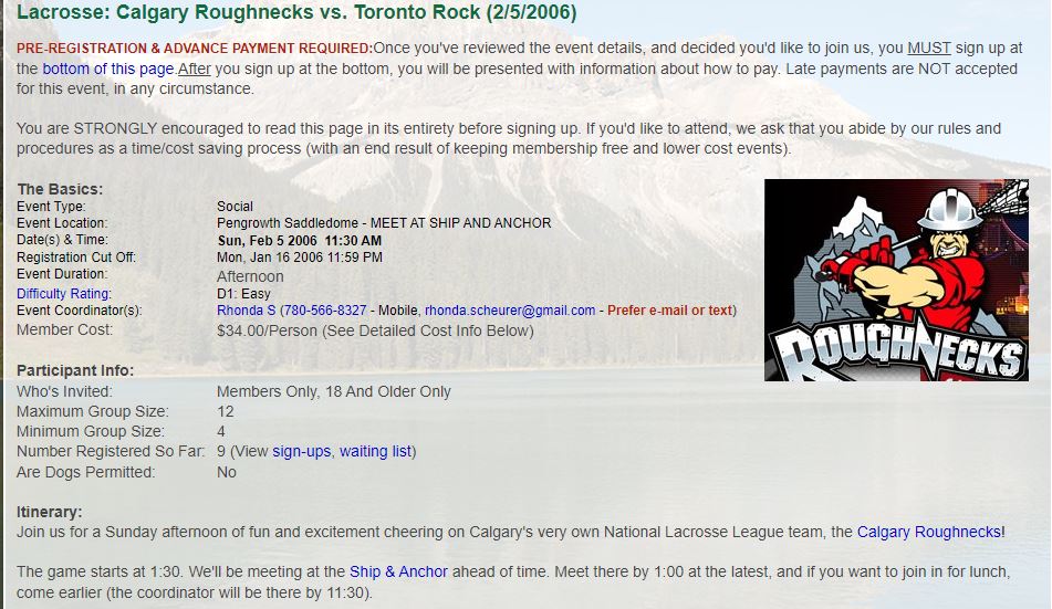 Club Events 2006 : 2006-02-05 : COC - Lacrosse: Calgary Roughnecks vs. Toronto Rock
